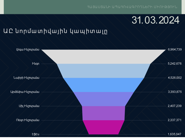 Ներկայացնում ենք ապահովագրական ընկերությունների նորմատիվային կապիտալը 31․03․2024թ․ դրությամբ․