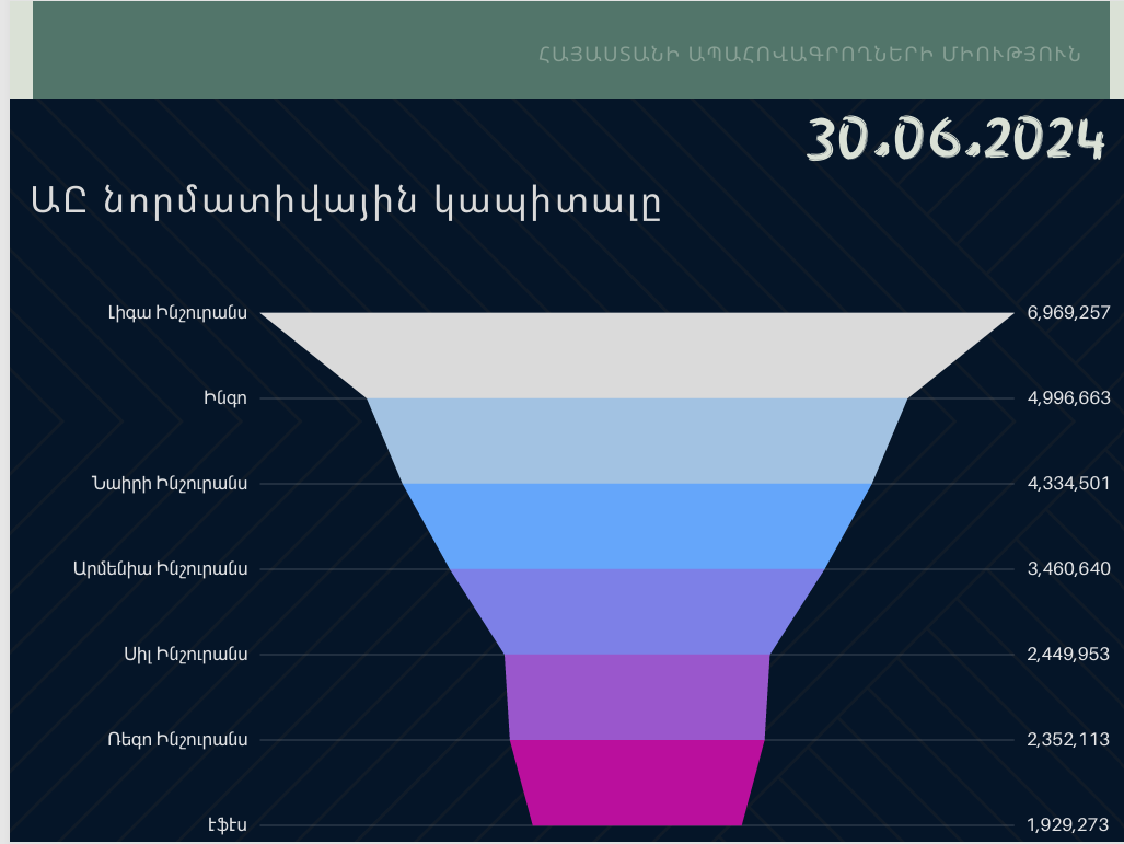 Ներկայացնում ենք Հայաստանում գործող ապահովագրական 7 ընկերությունների նորմատիվային կապիտալը․