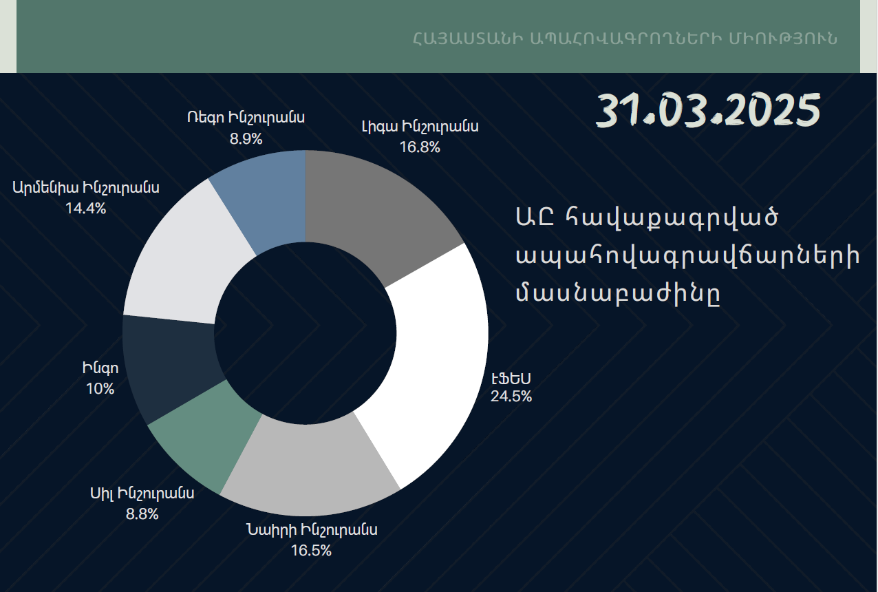 Ներկայացնում ենք 2025թ․ 1-ին եռամսյակի ընթացքում հավաքագրված ապահովագրավճարներում ապահովագրական ընկերությունների մասնաբաժինների վերաբերյալ ճշգրտված տեղեկատվությունը․