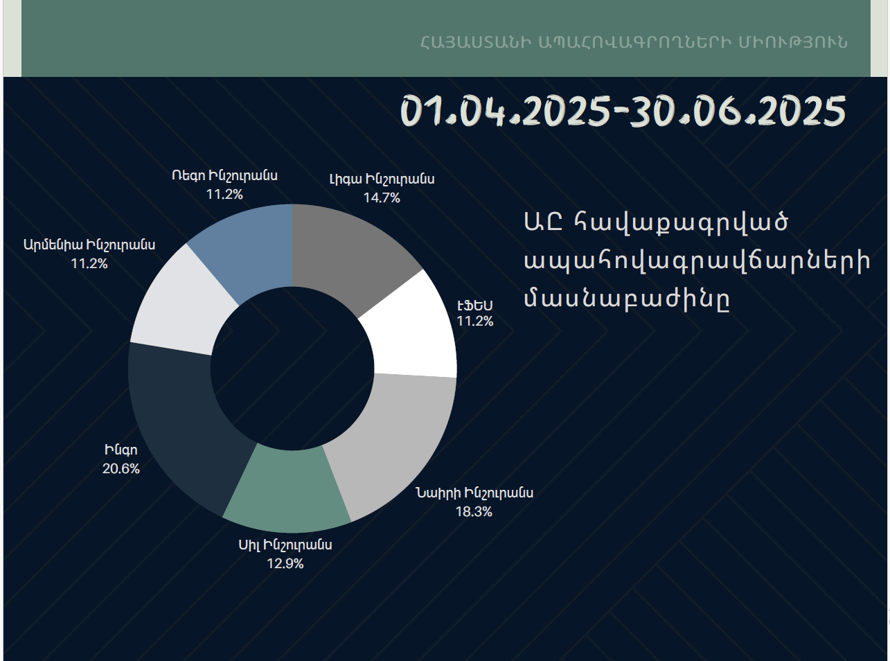 Ներկայացնում ենք 2025թ․ 2-րդ եռամսյակի ընթացքում հավաքագրված ապահովագրավճարներում ապահովագրական ընկերությունների մասնաբաժինները․