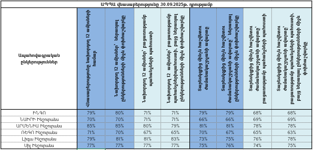 ԱՇ ապվճարներն ըստ ապահովագրության դասերի