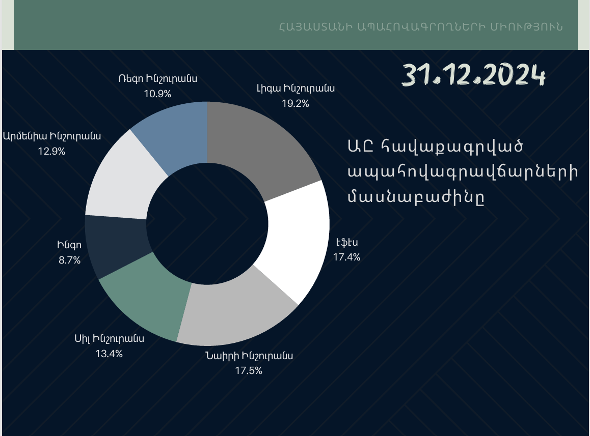 Ներկայացնում ենք 2024թ․ ընթացքում հավաքագրված ապահովագրավճարներում ապահովագրական ընկերությունների մասնաբաժինը․