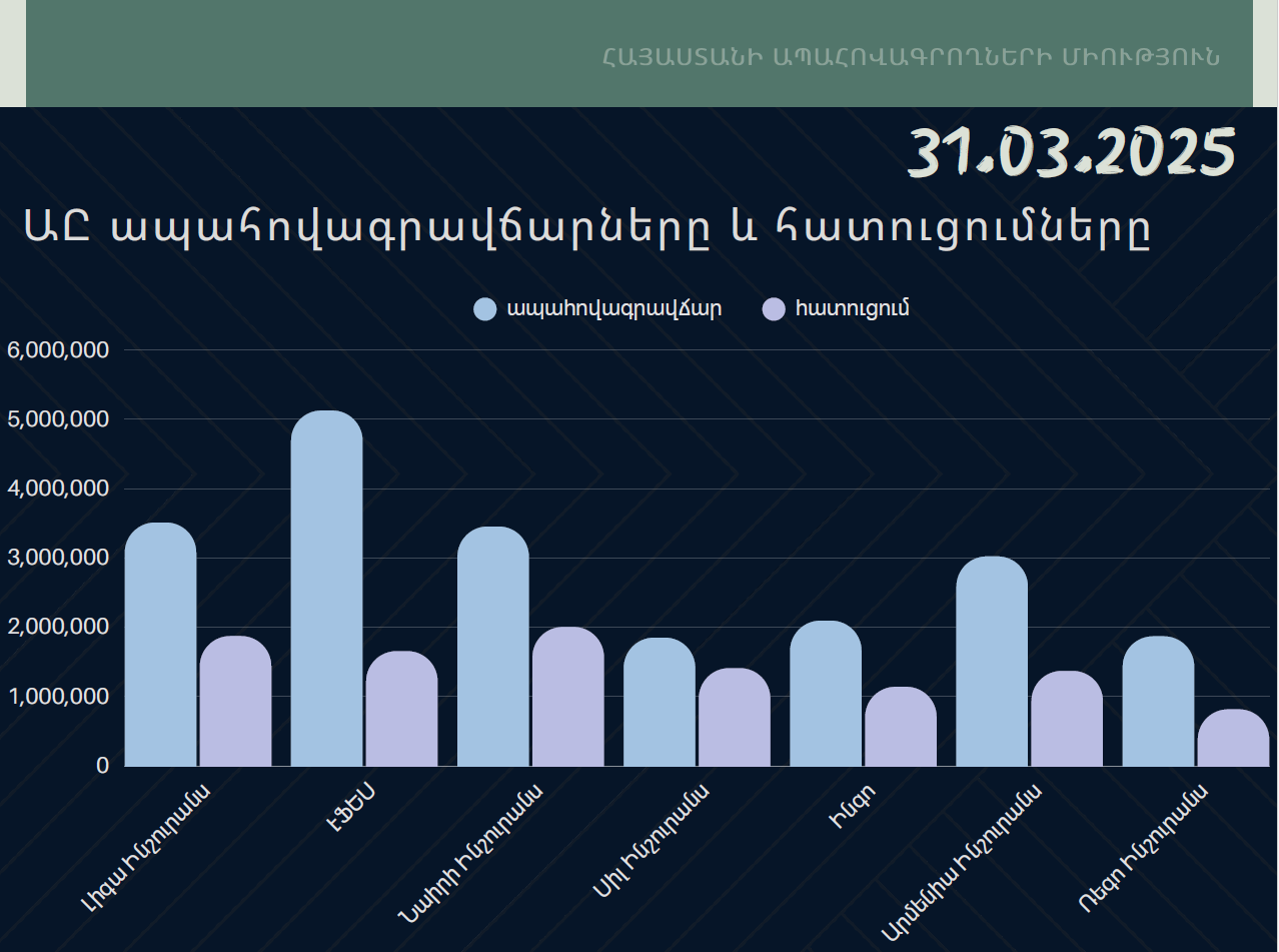 Ներկայացնում ենք 2025թ․ 1-ին եռամսյակի ընթացքում Հայաստանում գործող ապահովագրական 7 ընկերությունների հավաքագրած ապահովագրավճարների ու վճարած հատուցումների վերաբերյալ ճշգրտված տեղեկատվությունը․