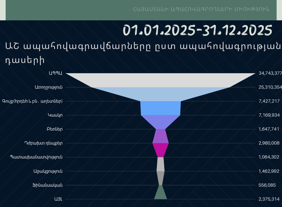 Ներկայացնում ենք ապահովագրական ընկերությունների կողմից հավաքագրված ապահովագրավճարների ճշգրտված մեծությունների համեմատությունը 2025թ․ 4-րդ եռամսյակի համար (2025թ․ և 2024թ․ համեմատություն).